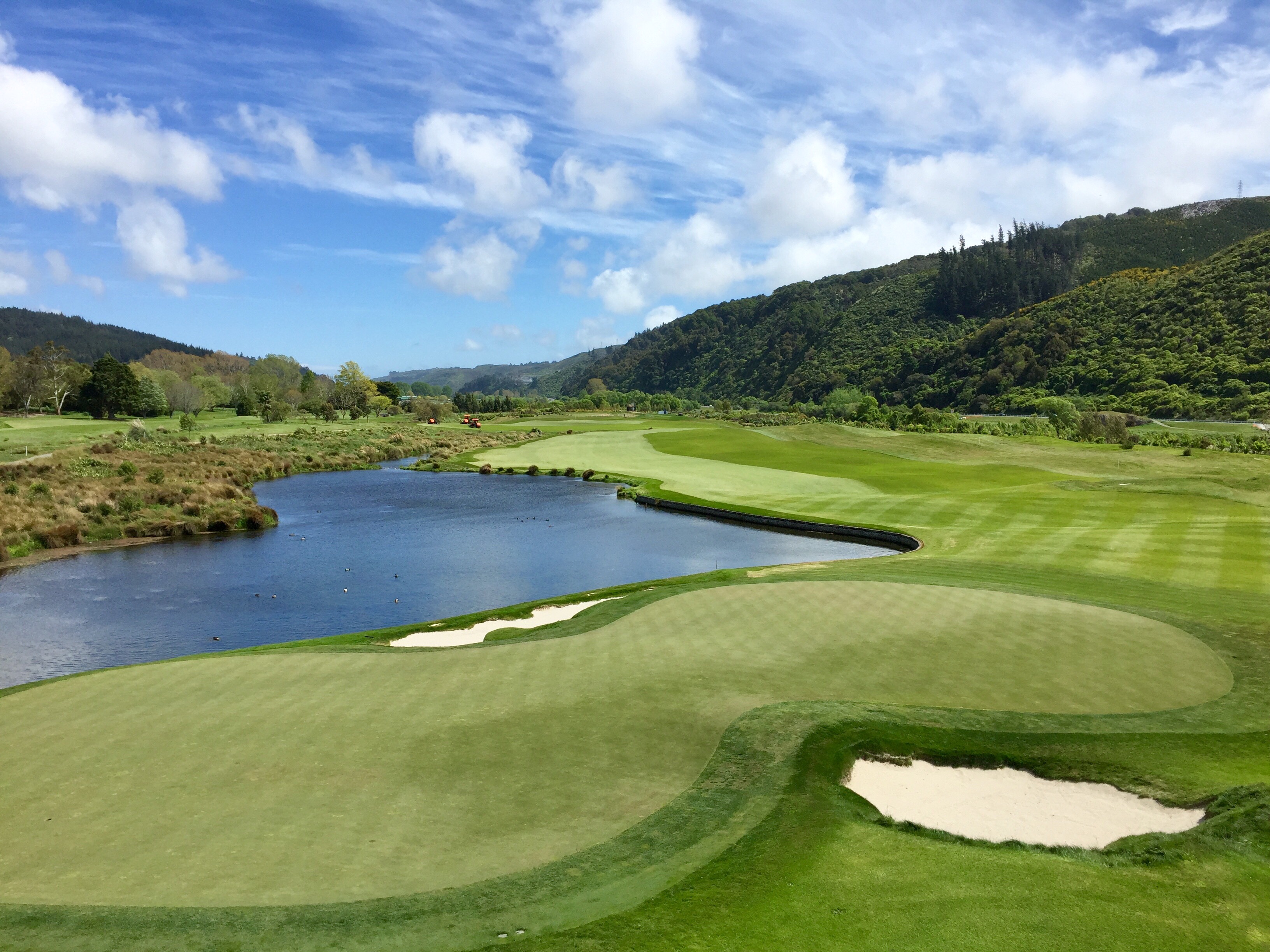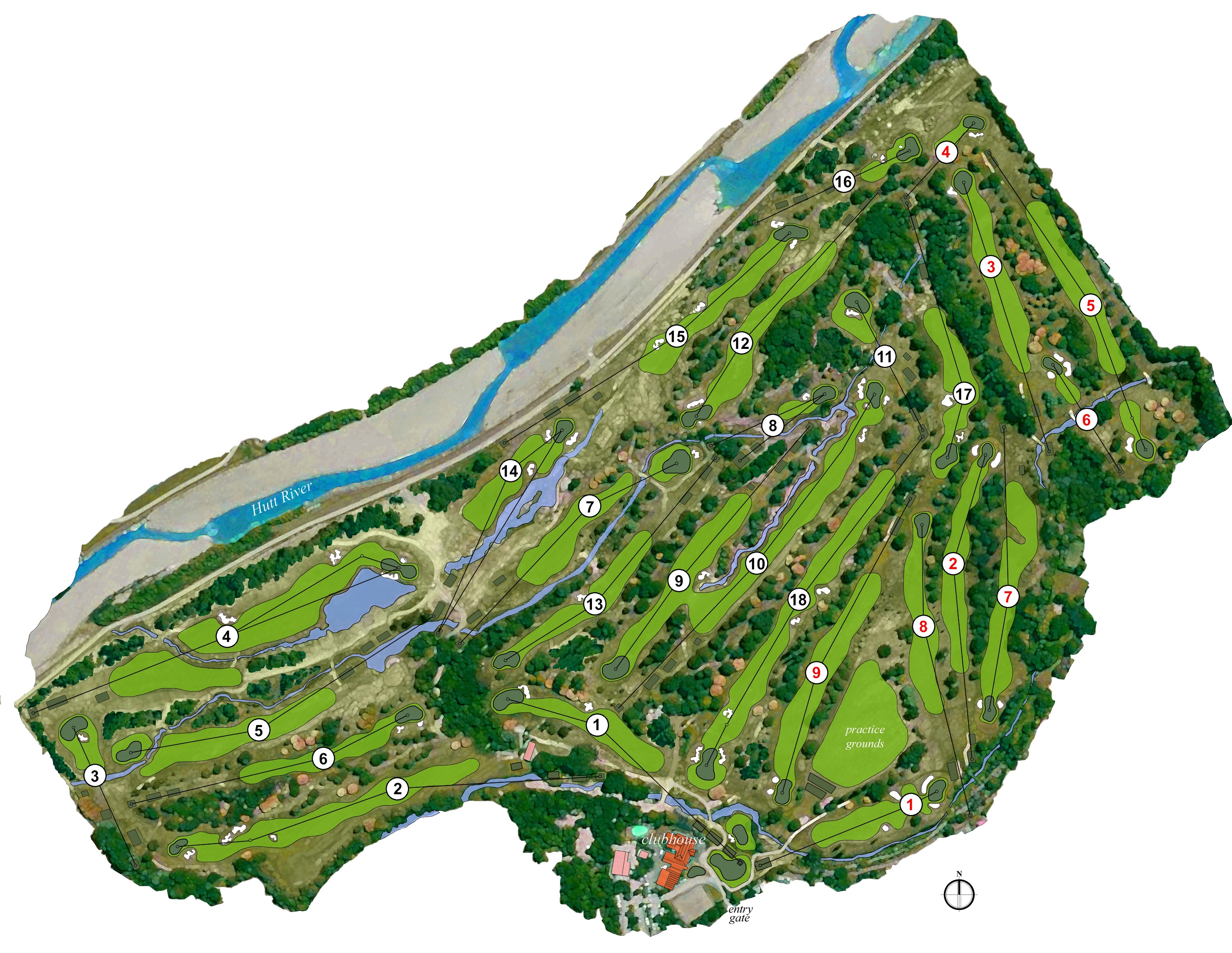 The Heretaunga course was redesigned by Greg Turner and Scott MacPherson and re-opened in 2013. Set on gentle terraces formed from an ancient riverbed, the course weaves among mature native and exotic trees, creeks and watercourses; with birdlife and natural water features adding both beauty and strategic consideration. The course challenges golfers to play strategically while navigating the water features, and undulating terrain.